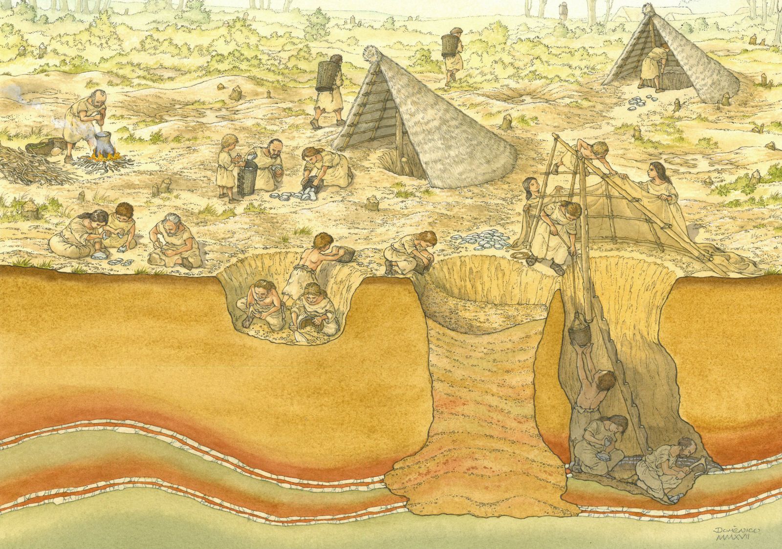 Für die Menschen der Region war der Hornstein ein bedeutender Rohstoff – zur Herstellung von Waffen und Werkzeugen vor allem, aber auch zur Erzeugung von Feuer: „Wir sind hier in einer Zeitschiene, wo es noch kein Metall gibt – die Leute haben keine Messerklingen oder Beilklingen nehmen können, um zu schneiden, zu hacken oder für sonstige Tätigkeiten, wo man scharfe Kanten braucht. Sie mussten einen Rohstoff besorgen, der diese Tätigkeiten erfüllen kann – und dafür war Hornstein, Feuerstein und ähnliche Dinge überlebensnotwendig“, sagt Brandl.