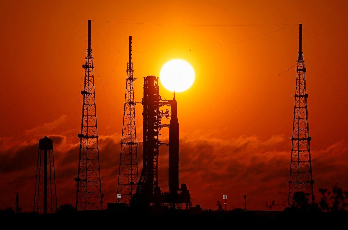 Mit nur maximal 1,3 Kilometer pro Stunde rollte ein sogenannter "Crawler" die 1.600 Tonnen schwere SLS-Rakete vorsichtig zum Startplatz. Es ist einer von zwei Crawlern, die schon die Saturn-V-Raketen zu ihrem Startplatz brachten.