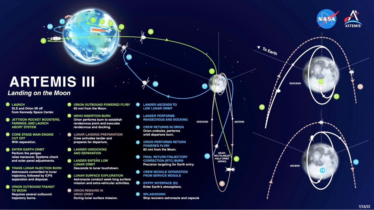 Während des Flugs um die Rückseite des Mondes sind drei Stunden speziell für Mondbeobachtungen, Fotografien und geologische Untersuchungen vorgesehen. Die dabei gewonnenen Erkenntnisse sollen helfen, eine spätere Landung am Südpol des Mondes vorzubereiten. Nach insgesamt etwa zehn Tagen im All tritt Orion mit einer Geschwindigkeit von fast 40.000 Kilometern pro Stunde in die Erdatmosphäre ein und landet schließlich am Fallschirm hängend im Pazifischen Ozean.