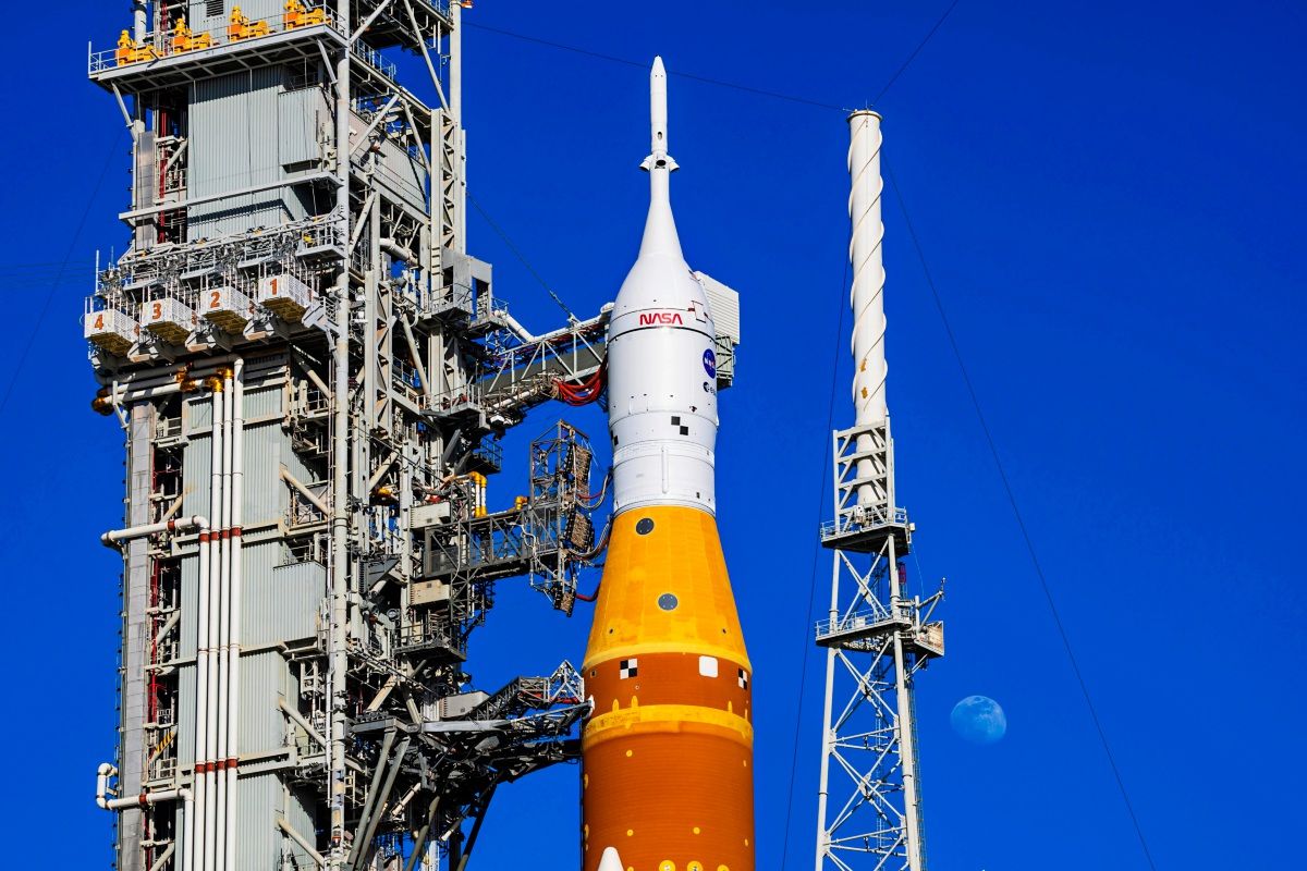 Das SLS der Nasa mit dem Raumschiff Orion an seiner Spitze könnte in wenigen Wochen vier Menschen auf eine Reise um den Mond schicken