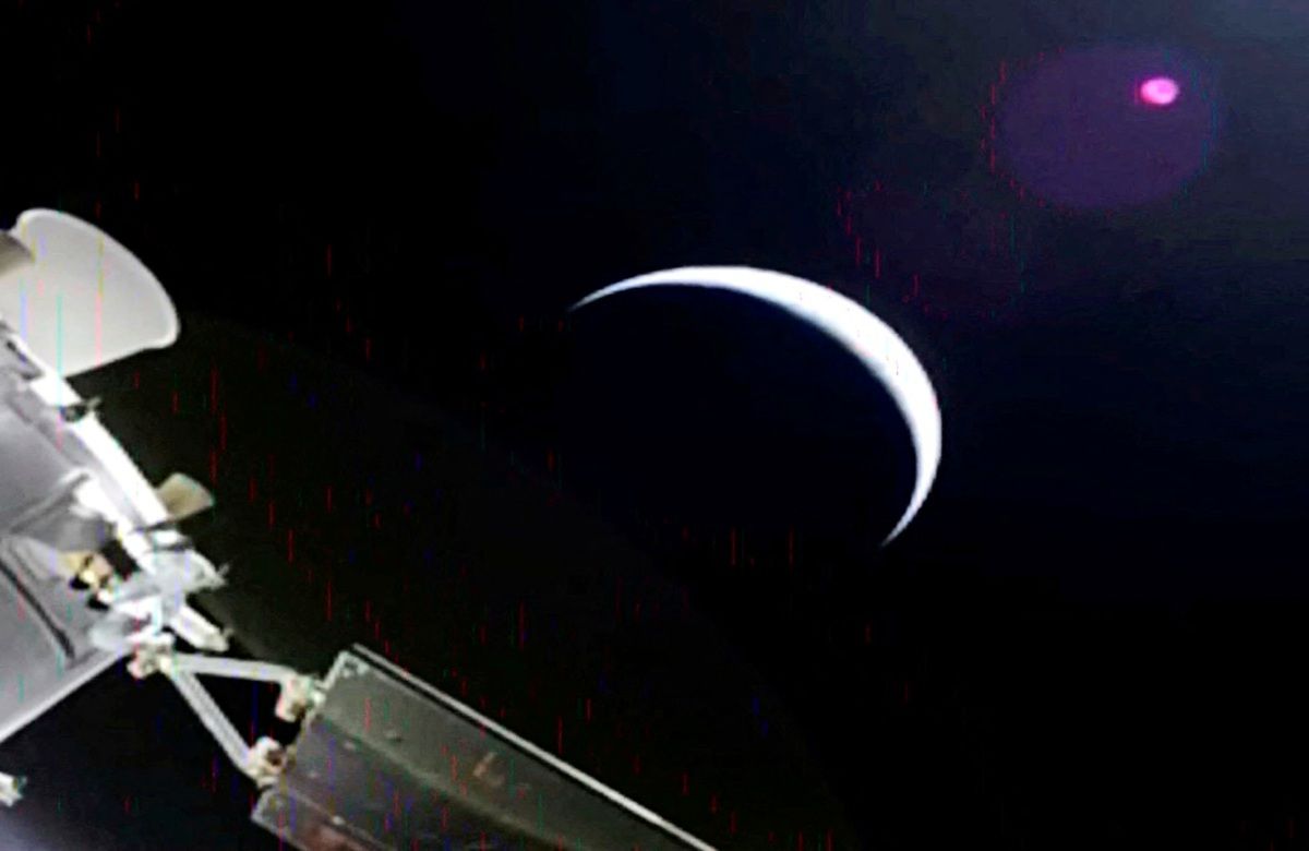 In einer hohen Erdumlaufbahn führt die Crew zudem ein "Proximity Operations Demonstration"-Manöver durch, bei dem sie die Annäherung an die ausgebrannte Oberstufe der Rakete übt. Dann schließlich zündet das Triebwerk des europäischen Servicemoduls und bringt Orion auf eine viertägige Reise in Richtung Mond.