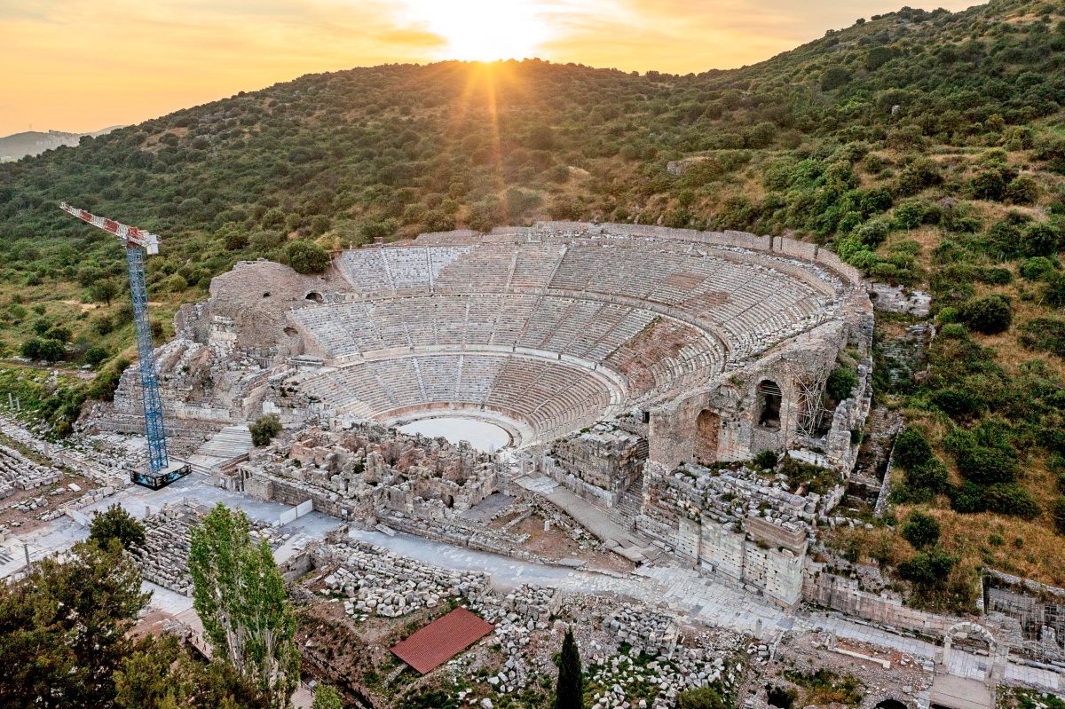 Auch das große Theater von Ephesos ist weltbekannt. Bis zu 20.000 Menschen konnten darin einst Platz nehmen und sich beispielsweise Gladiatorenkämpfe ansehen. Eine weitere Besonderheit ist das Hanghaus, ein Wohngebäude, in dem städtische Eliten lebten. Das Hanghaus gilt als eindrucksvolle Quelle für die römische Wohnkultur. In den Räumen befinden sich zahlreiche Wandmalereien, die den jeweiligen zeitgenössischen Geschmack der Hausbesitzer bis heute widerspiegeln.